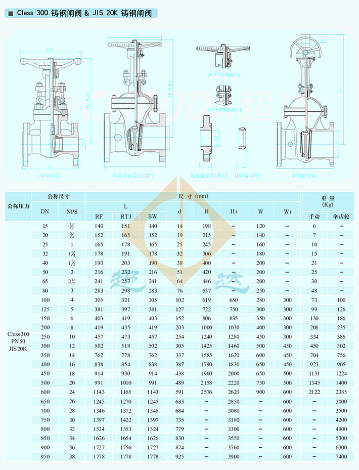 超達閥門集團專業(yè)生產(chǎn)Class300鑄鋼閘閥