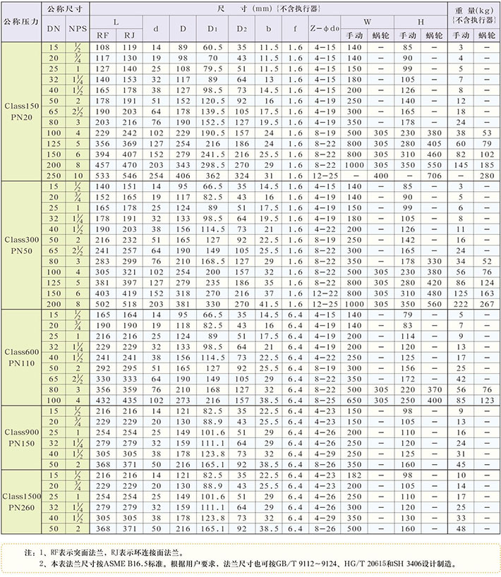 壓力:Class150~Class1500、PN16~PN100