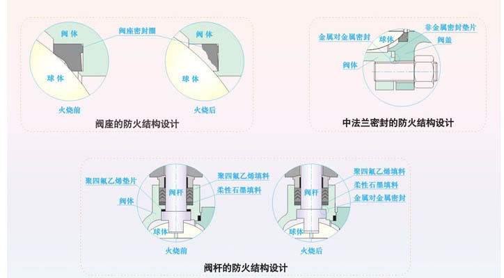 在浮動控制球閥的使用現(xiàn)場發(fā)生火災時,當聚四氟乙烯等非金屬材料制作的閥座密封圈、閥桿上密封墊、閥桿密封填料以及中法蘭密封墊片在高溫下分解或破壞后,超達球閥能夠借助于特別設(shè)計的金屬對金屬輔助密封結(jié)構(gòu),有效地控制閥門的內(nèi)漏和外漏。 對于用戶有防火要求的浮動控制球閥,超達公司的防火設(shè)計均符合API 607、API 6FA、BS 6755及JB/T 6899等標準規(guī)范的要求。