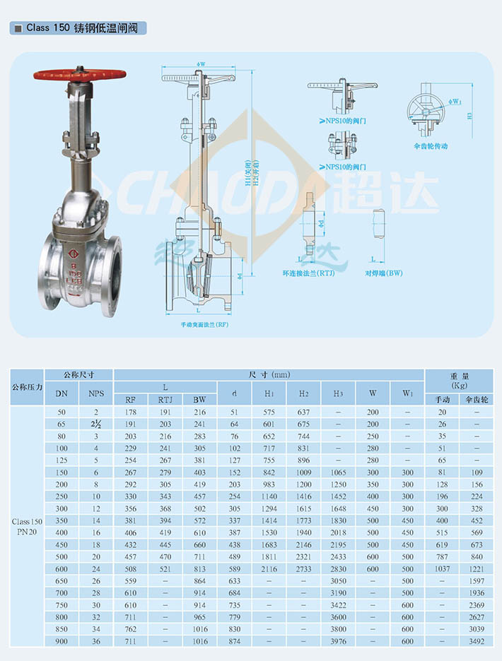 超達閥門集團專業(yè)生產(chǎn)Class150鑄鋼低溫閘閥