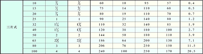 QS11F型內(nèi)螺紋連接三片式球閥結(jié)構(gòu)外形尺寸