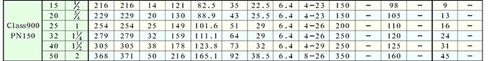 Class900浮動(dòng)式球閥結(jié)構(gòu)外形尺寸