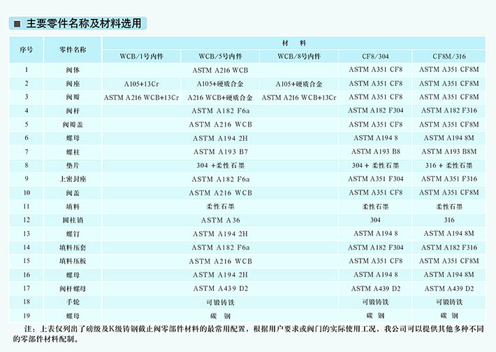 鍛鋼截止閥零件部件材料