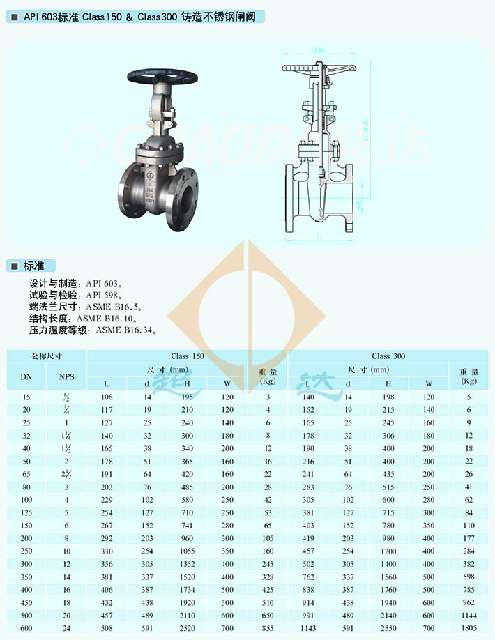 不銹鋼閘閥適用于DN15~DN600、Class150~Class300的各種管路上,用于截斷或接通管路中的介質(zhì)。選用不同的材質(zhì),超達集團的不銹鋼閘閥可分別適用于水、蒸汽、油品、硝酸、醋酸、氧化性介質(zhì)、尿素等多種介質(zhì)。不銹鋼閘閥的驅(qū)動方式為手動、齒輪傳動、氣動或電動。不銹鋼閘閥一般采用法蘭連接,也可采用對焊連接。