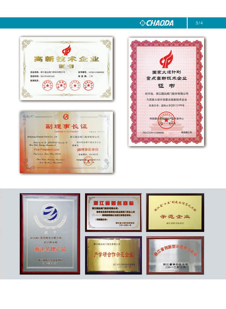 超達閥門集團企業(yè)資質(zhì)