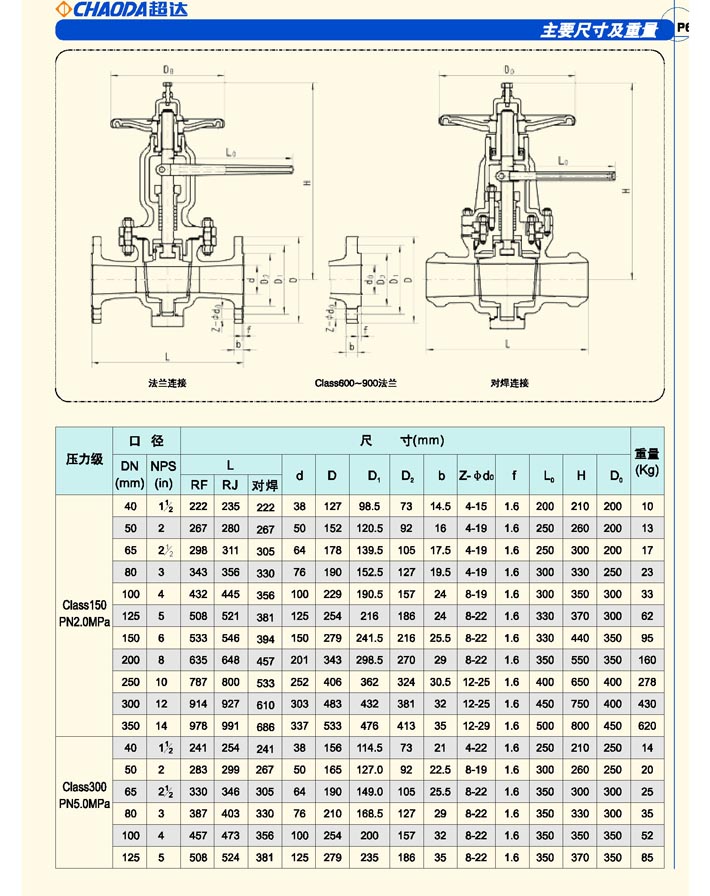 壓力:Class150~Class1500、PN16~160