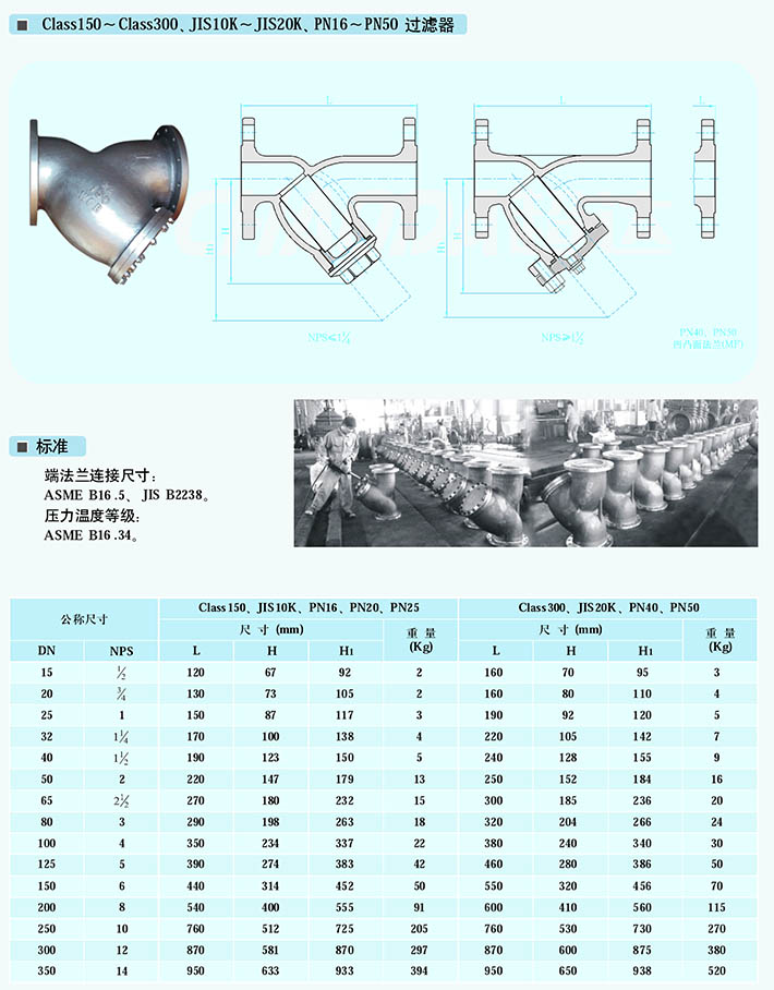 連接法蘭標(biāo)準(zhǔn):ASME B 16.5、GB、JB、HG、SH、BS、DIN、JIS等