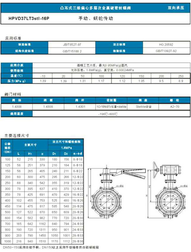 凸耳對(duì)夾三偏心多層次金屬硬密封蝶閥適用于Class150~Class1500、PN16~PN160的各種管路上,用于截?cái)嗷蚪油ü苈分械慕橘|(zhì)。選用不同的材質(zhì),超達(dá)集團(tuán)的凸耳對(duì)夾連接三偏心多層次金屬硬密封蝶閥可分別適用于水、蒸汽、油品、硝酸、醋酸、氧化性介質(zhì)、尿素等多種介質(zhì)。凸耳對(duì)夾三偏心多層次金屬硬密封蝶閥的驅(qū)動(dòng)方式為手動(dòng)、蝸輪傳動(dòng)、氣動(dòng)或電動(dòng)。凸耳對(duì)夾連接三偏心多層次金屬硬密封蝶閥一般采用法蘭連接,也可采用對(duì)焊連接。