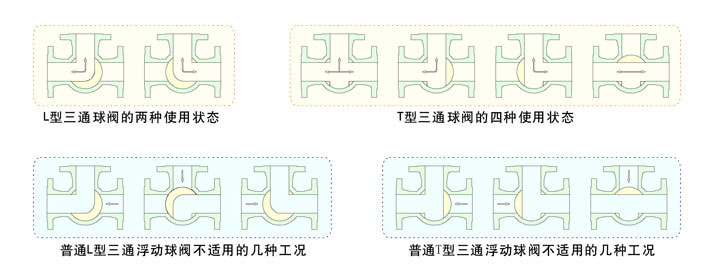 (1)、三通球閥在結(jié)構(gòu)上采用一體化結(jié)構(gòu),4面閥座的密封型式,法蘭聯(lián)接少,可靠性高,設(shè)計(jì)實(shí)現(xiàn)了輕量化。(2)、三通球芯分T型和L型,使用壽命長(zhǎng),流通能力大,阻力小。(3)、球閥按作用式分單作用和雙作用兩種型式,單作用式的特點(diǎn)是一旦動(dòng)力源發(fā)生故障時(shí),球閥將處于控制系統(tǒng)要求的狀態(tài)。