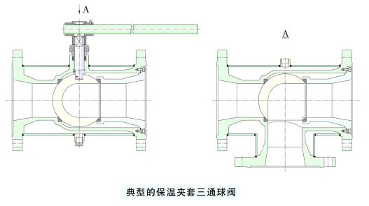 保溫夾套三通球閥采用整體式結(jié)構(gòu)設(shè)計(jì),結(jié)構(gòu)緊湊,保溫效果好,密封可靠。根據(jù)用戶要求,可以采用L形三通,也可采用T形三通。