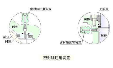 根據(jù)用戶要求,超達(dá)固定球閥可以設(shè)置密封脂緊急注射裝置,對(duì)于DN150(NPS6)以上的固定球閥,在閥桿和閥座上均裝有密封脂注射裝置,而對(duì)于DN125以下的固定球閥,在閥門中腔裝有密封脂注射裝置。當(dāng)閥座密封圈或閥桿O型密封圈因意外事故損壞時(shí),可通過密封脂注射裝置注射密封脂,以防止介質(zhì)通過閥座密封圈和閥桿的泄漏。